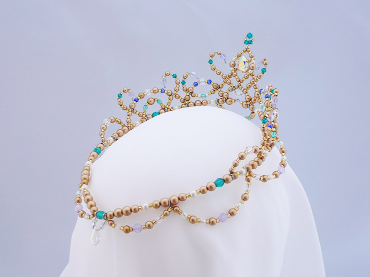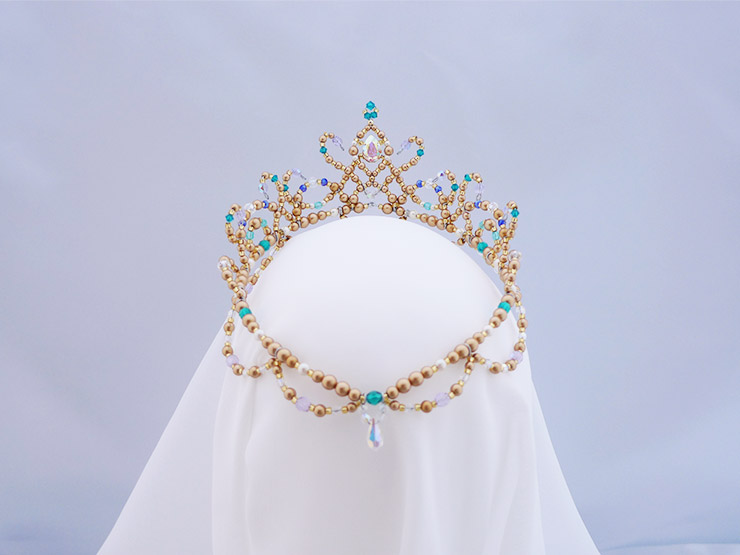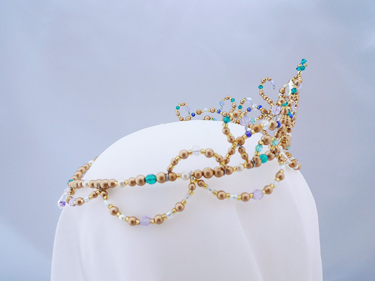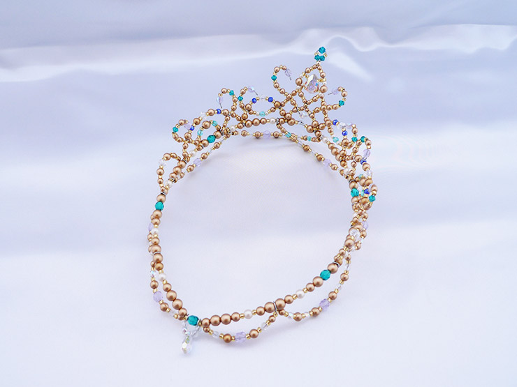 明るいグリーンと深いブルーをmixさせて、海をイメージしたサークルティアラ。